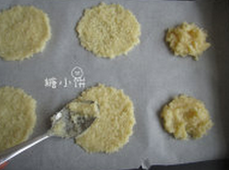 5. 舀在烤盘上,用汤匙摊成直径5cm的圆片