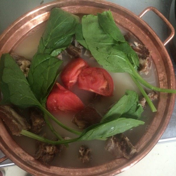 8. 放入名族手工铜锅中,配上色香味俱全的素菜,煮开即可食用