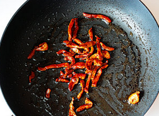 3. 不粘锅加1/2勺油烧热,放入里脊肉条