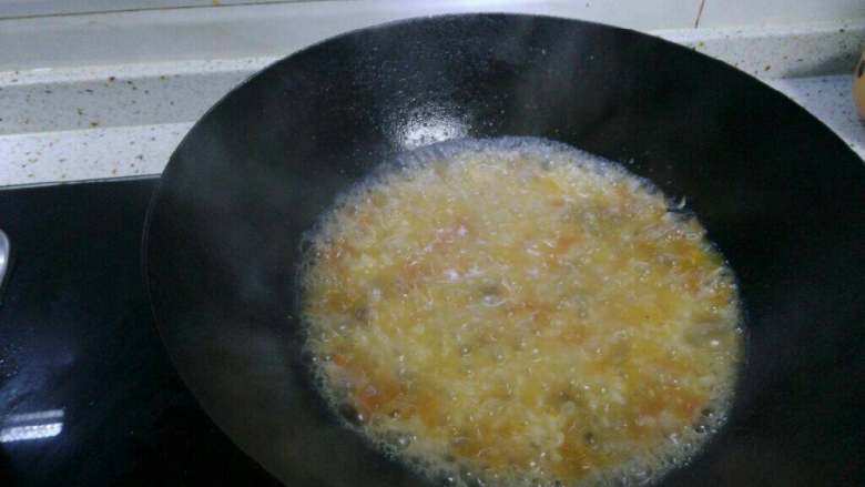 3. 锅里倒入少许油(我用的一小勺猪油),烧热后倒入番茄翻炒。