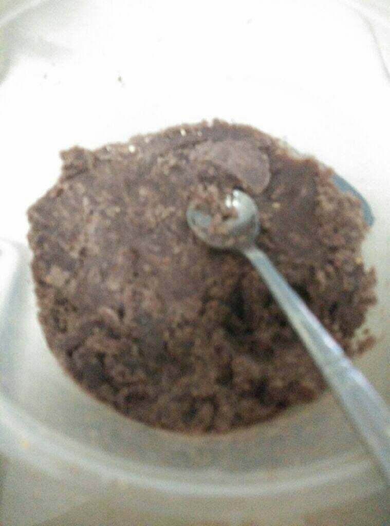 5. 取小块面团,搓揉圆压扁,豆沙适量放在中间,再包起来搓揉圆再压扁(包的过程不方便拍照)