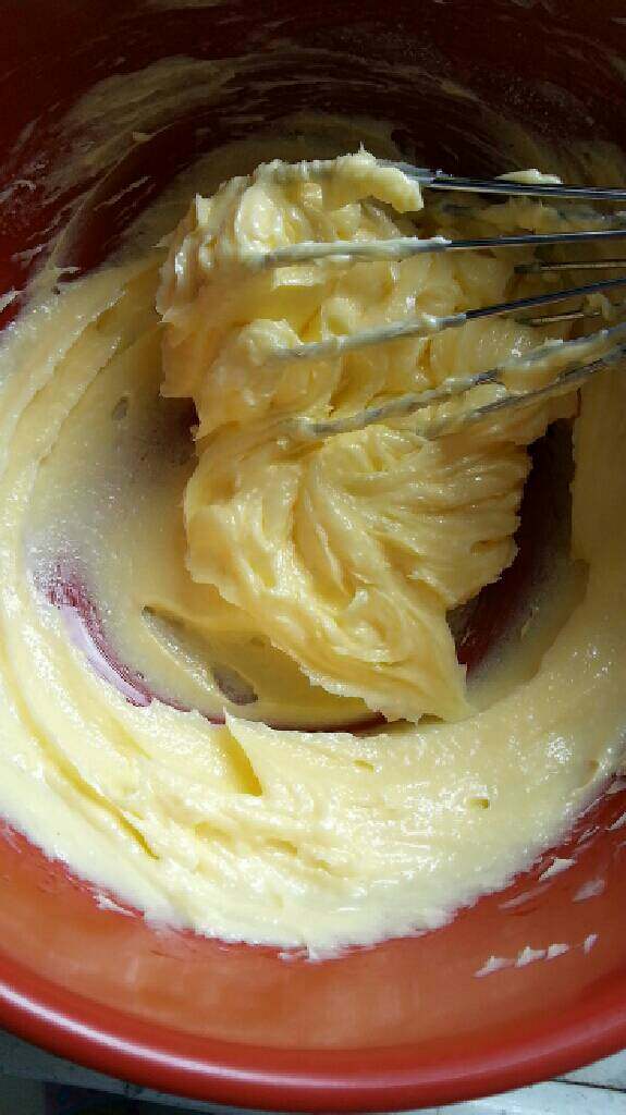 2. 分两次加入细砂糖,搅打均匀再加入下一次