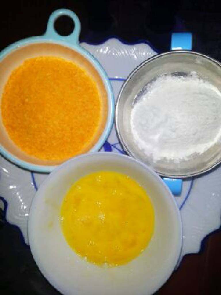 4. 鸡蛋打散、洋葱圈先粘面粉、再裹层鸡蛋液、最后再上面包糠