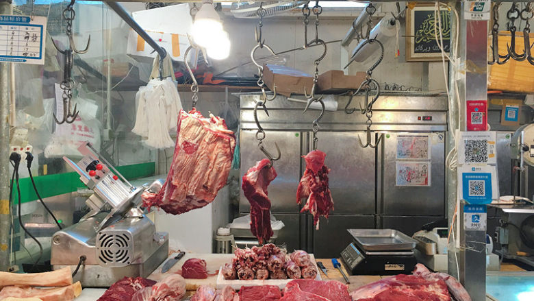 接下来就是肉食动物的福音了。春兰清真牛羊肉店,这也是一家非常有名气的店,我去的当天,很多身披罩袍戴头巾的穆斯林女性在此购买牛肉。