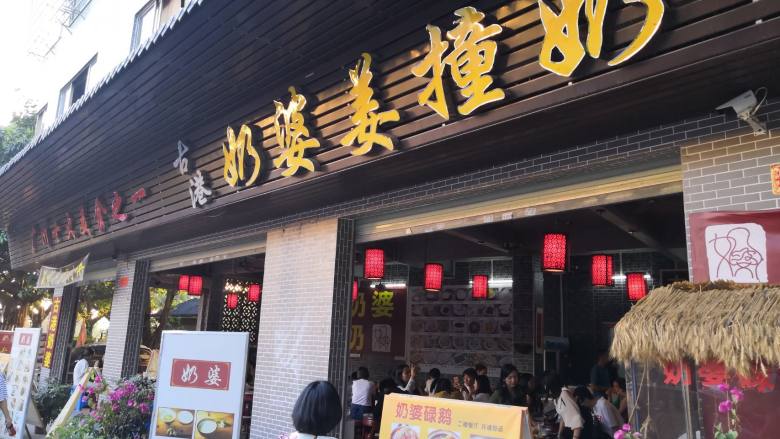 路边正好有家奶婆姜撞奶,在广州呆了4年,知道她家的姜撞奶是出了名的好吃。