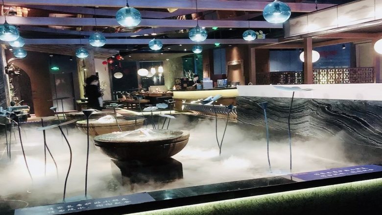 位置:苏州圆润时代广场。店面门头是木制门匾,店内装潢也都是古色古香的,小池塘烟雾缭绕的,很有仙气。我们做了靠窗的位置,类似亭子的格局,私密性不错。吊灯也独具特色,古韵十足,就是光线太过昏暗。